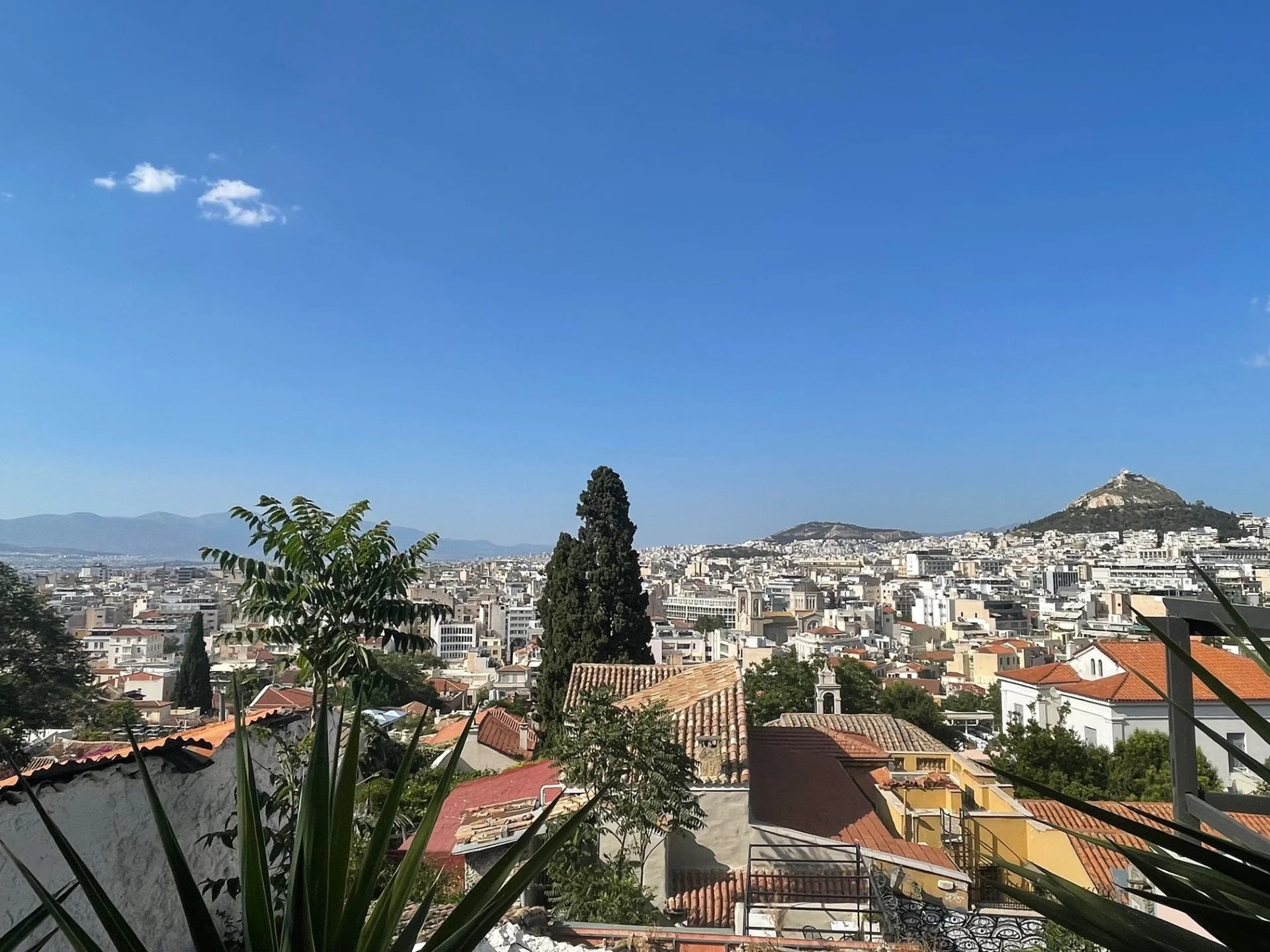 We flew from the U.S. to Athens. Obviously, this was an overnight flight but we were so excited to get to Greece. Once we landed to had a private transfer to our hotel. There were plenty of airport taxis too, but after such a long flight it is nice to have a car waiting. This is a surprisingly cheap option, so don’t worry too much about the cost. We checked into our hotel and changed our clothes. We stayed at the Elia Ermou Athens Hotel. This is a beautiful hotel in a great location. It is near a lot of restaurants and shopping. It had a great roof top area where breakfast is served with views of the Acropolis! The only con was it was pretty crowded when we were there in early June. Also, the rooms have glass showers that are partially open without privacy, which is obviously not good if you are traveling with your children or if you are easily chilled in the shower. That first day we just walked around Plaka and went to the Acropolis Museum. We recommend this for sure as many of the statutes from the Acropolis are actually housed at the museum to protect them from the elements. Then we had an early dinner and went to bed early since we were slightly jet lagged.